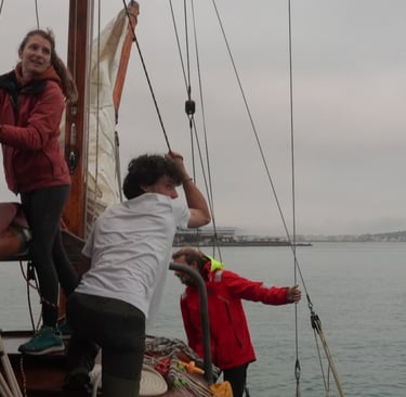Lors des premières sorties avec le Skjoldnaes, je restais à côté de mon père qui tentait de maîtriser l'engin. Lors des 5 premières sorties, on a eu 5 pannes, on s'est échoué deux fois, on a du sortir les voiles en catastrophe deux autres fois pour éviter de foncer dans des catamarans valant plusieurs millions, et j'en passe. Petit à petit, réparation après réparation, on a commencé à maîtriser le voilier, et moi à prendre mes marques. En novembre 2023 je faisais mon premier appontage et en mars 2024 ma première sortie en tant que capitaine du Skjoldnaes.